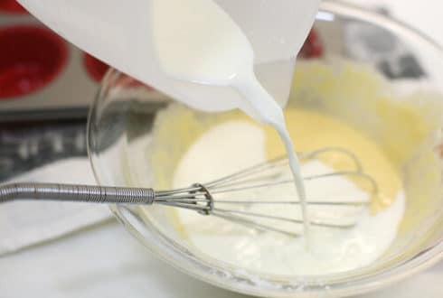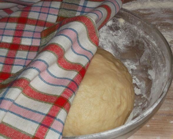 Молоко слегка согреть на паровой бане или в микроволновой печи. Всыпать немного сахара, слегка посолить и добавить сухие дрожжи. Вбить два яичка и все тщательно вымешать.