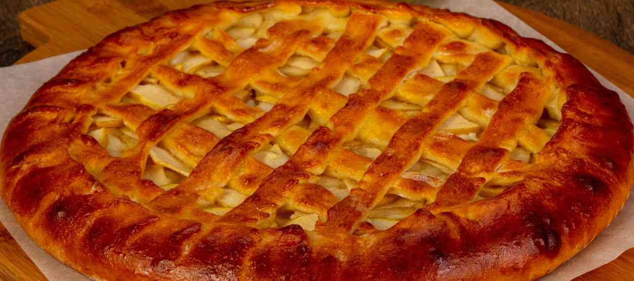 После этого остатки основы раскатать, нарезать на тонкую лапшу и сплести из нее косички. Это послужит украшением. С помощью вилки или венчика взбить в небольшой емкости одно яичко и смазать им получившуюся выпечку. Отправить в духовку на 50 минут.