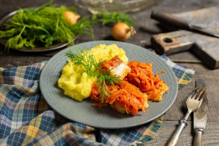 Для тех, кто испытывает ностальгию по рыбе под маринадом из моркови и лука, как в советской столовой, следует использовать следующий рецепт с маринадом.