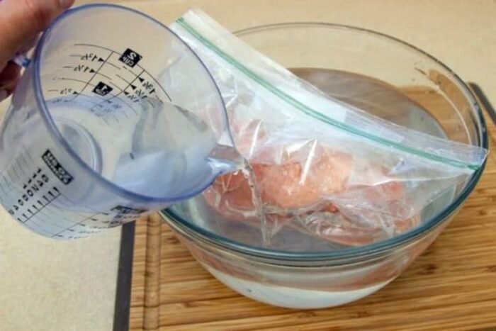 Тёплая или горячая вода не подходит, поскольку под её воздействием нарушается нежная структура мяса.