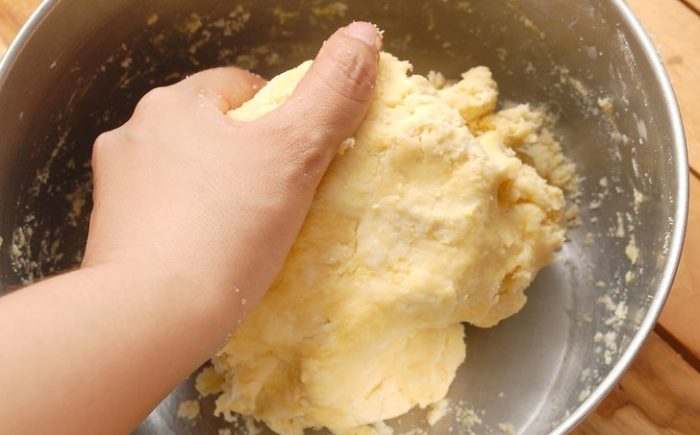 - Погасить соду лимонным соком или уксусом. Добавить смесь в тесто и замесить до однородности.