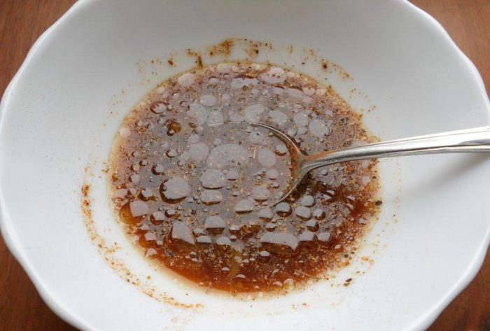Влить кунжутное масло. Тщательно перемешать. Добавить перечную пасту и еще раз тщательно перемешать.