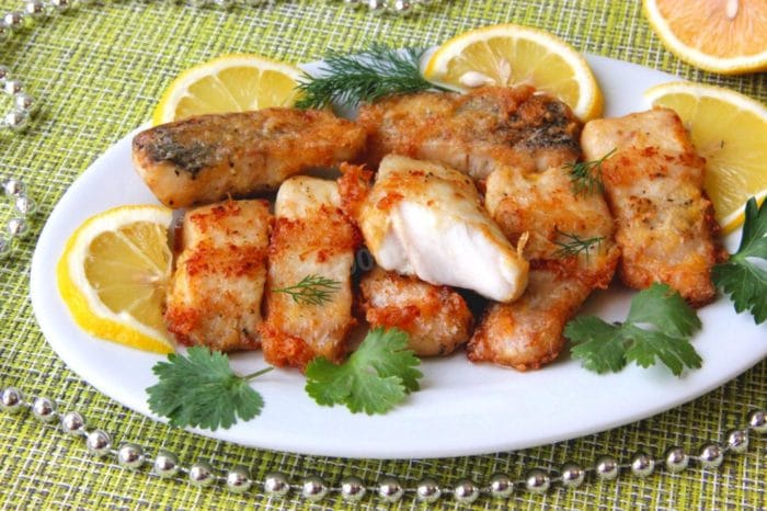 - Осталось только пожарить. Когда нижняя часть покроется хрустящей корочкой, нужно перевернуть кусочки. Всего на прожарку уйдёт около 6-8 минут. После того, как рыба пожарится, её можно подавать на стол вместе с гарниром. Если всё сделано точно по рецепту, то получиться вкусно.