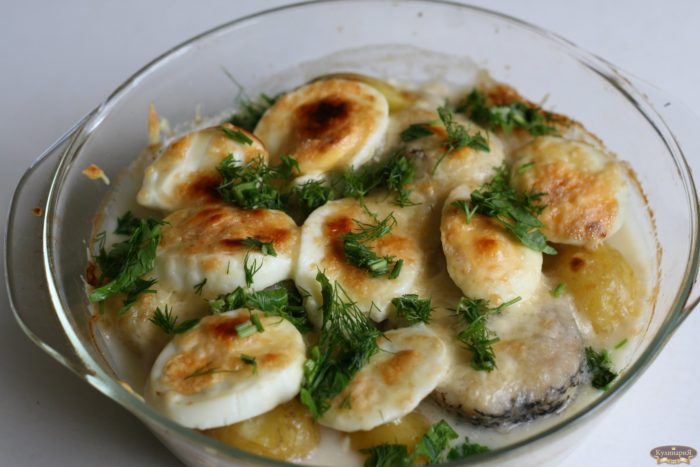 Отличным ужином может стать щука в сметанном соусе с картофелем.