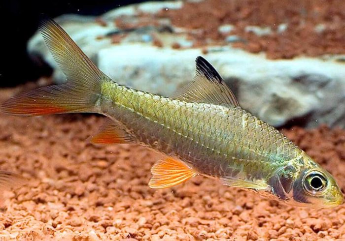 - Псевдорасбора – длина до 10 см., без усиков, тело покрыто крупной чешуей;