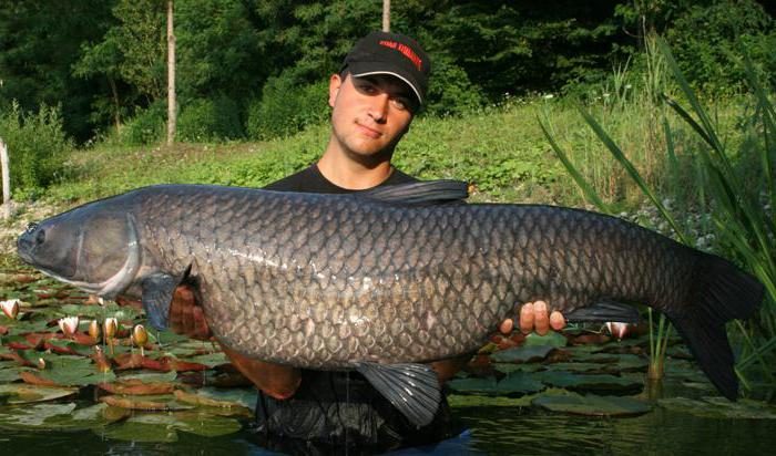 Черный Амур – еще один распространенный ценный промысловый род, достигает 120 см. и более 30 кг. Окрас тела и плавников темный, брюшко более светлое. Питается в основном моллюсками. Кроме вылова разводится в Средней Азии, Китае, России.