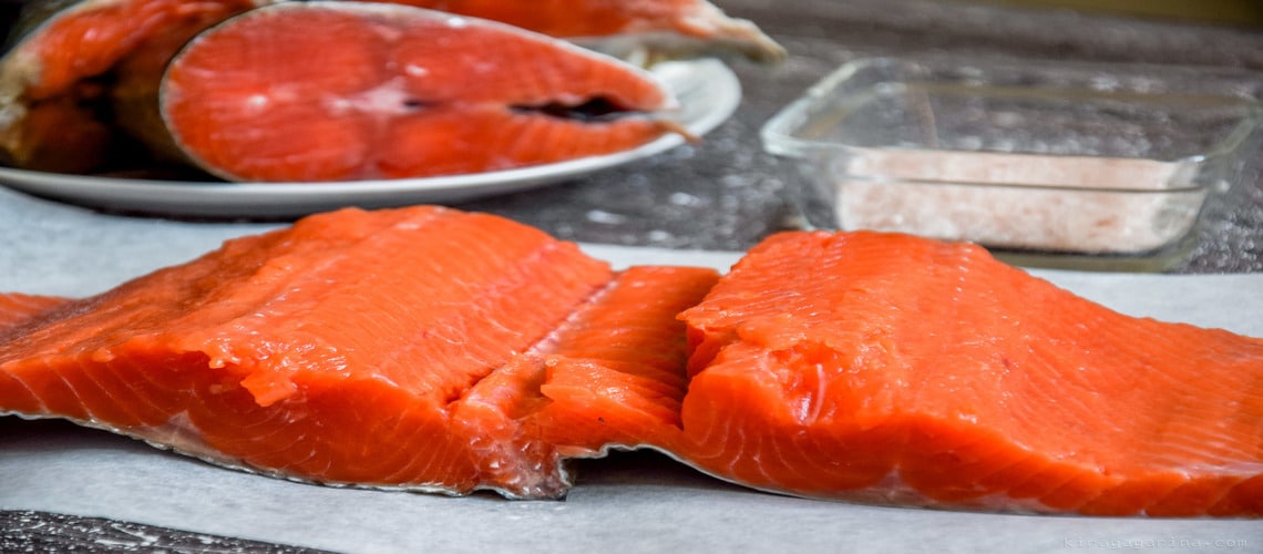 Когда есть потребность максимально сократить время просолки, то достаточно нарезать рыбку на небольшие куски. Сколько солить в этом случае, зависит от индивидуальных вкусовых предпочтений. Малосольный классический кижуч будет получен за 5-6 часов. Среднесоленый за 10 часов. А более крепкого посола за 1 сутки.