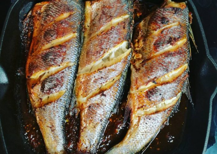 Рыбу тщательно промывают, потрошат и делают разрез вдоль всего хребта.