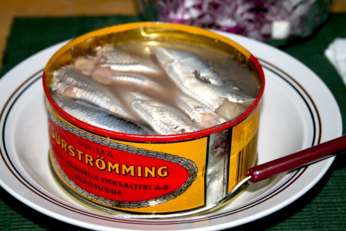 Сюрстремминг – это салака, выловленная в апреле, которая квасится определенным способом еще пару месяцев. После этого ее укладывают в банки, закрывают и хранят в холодном месте. В итоге продукт, который называется квашеная рыба.