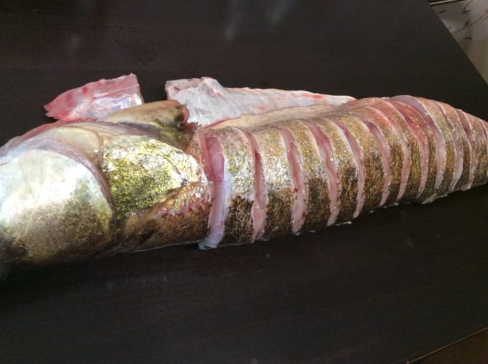 - Получается две половинки филе на шкуре.