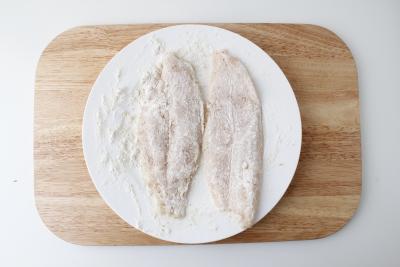 В тарелке соедините муку, соль и перец. Обваляйте филе судака в муке со специями со всех сторон.