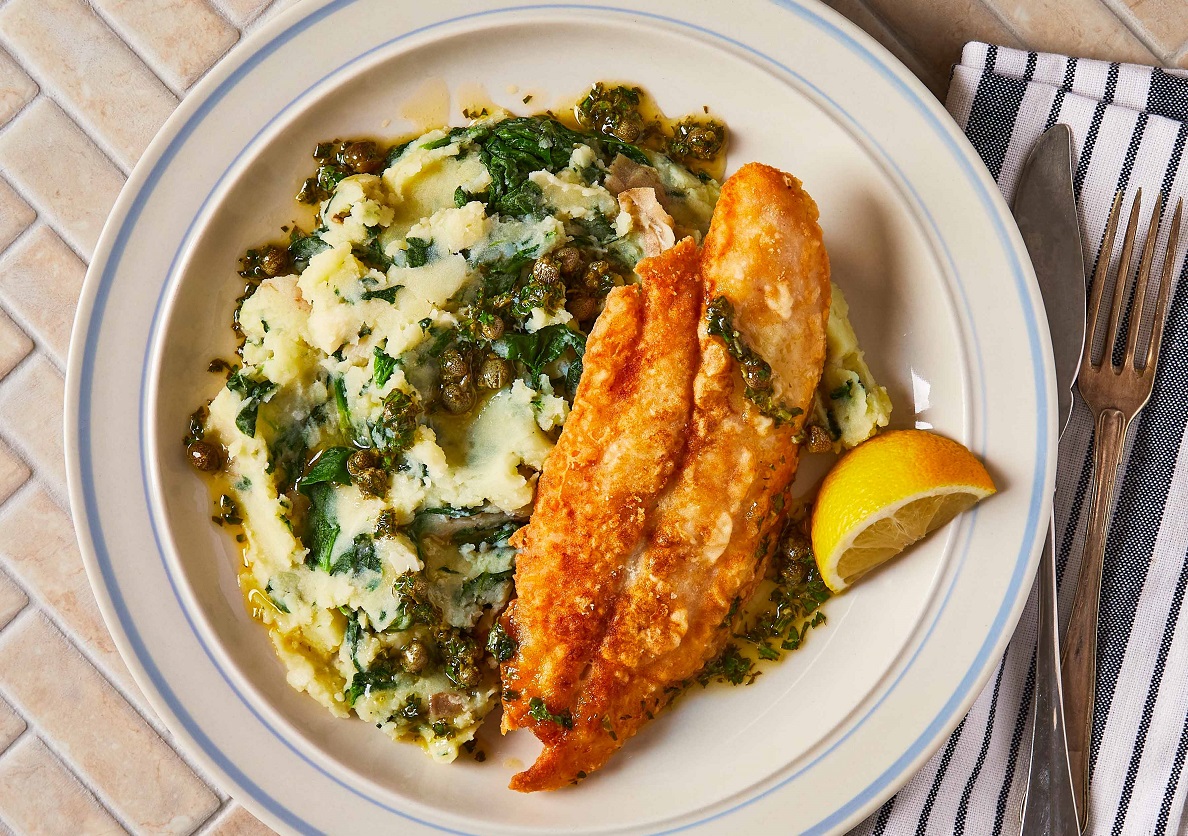 Приготовьте филе судака с пюре, но не привычным способом, а во французском стиле. Для этого рыбу обжарьте в мучной панировке до румяности. А на гарнир подайте картофельное пюре со шпинатом.