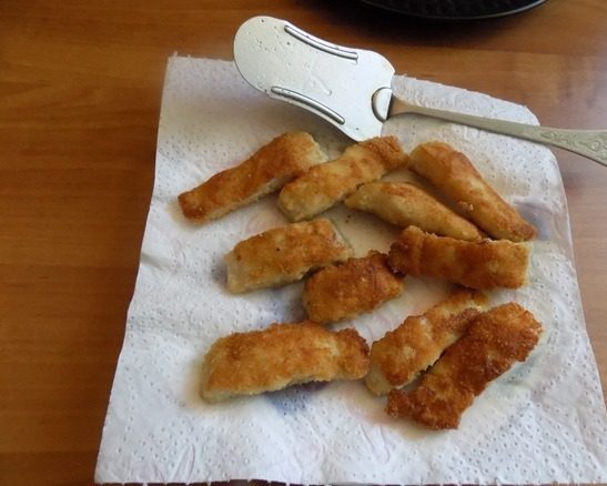 - Обжариваем рыбу во фритюре в течение 7 минут, затем вынимаем и перекладываем на бумажное полотенце, чтобы удалить излишки растительного масла.