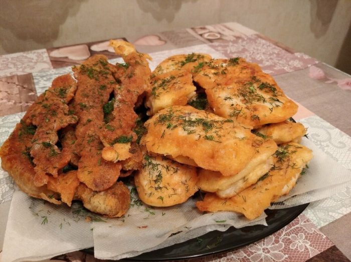 Для того, чтобы сделать жаренного терпуга более сытным и хрустящим, стоит предварительно обвалять его в кляре. Итоговое блюдо можно без проблем подать на стол на ежедневный ужин или торжество.