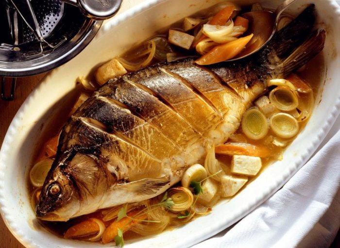 Чтобы приготовить эту речную рыбу в духовке, можно дополните ее самыми разными овощами. Причем, такой рецепт пригодится и для полноценного обеда, если добавить к рыбе питательный картофель. А также измененное блюдо может порадовать тех, кто сидит на диете – просто в этом случае запекается карп с некалорийными овощами.