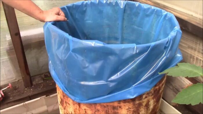 На дно ведра или бочки, в которой будет засаливаться рыба, выложить плотный целлофан. Высыпать на донышко получившуюся смесь.