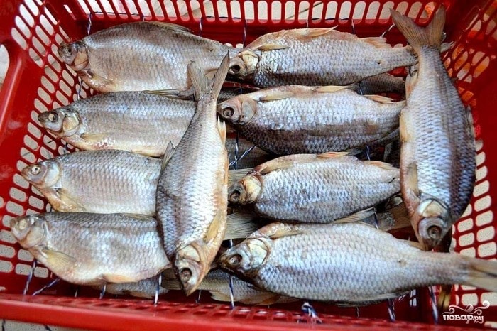 Для приготовления вяленой плотвы с кишками необходимы: