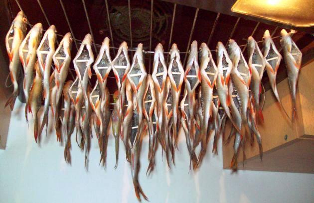Нанизать тарань на веревку и оставить вялиться на протяжении недели. Лучше всего закрыть рыбку небольшим слоем марли или ненужной тряпки, чтобы на ней не оседали насекомые.
