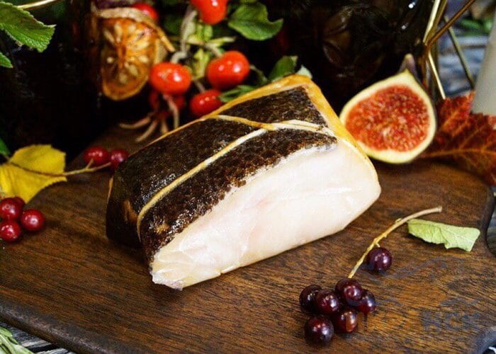 После окончания промысла, деликатесы, польза и вред которых достаточно уравновешены, поступают на разделочные заводы, где тушки очищают от костей и делят на толстые куски, впоследствии использующиеся для копчения и изготовления строганины.