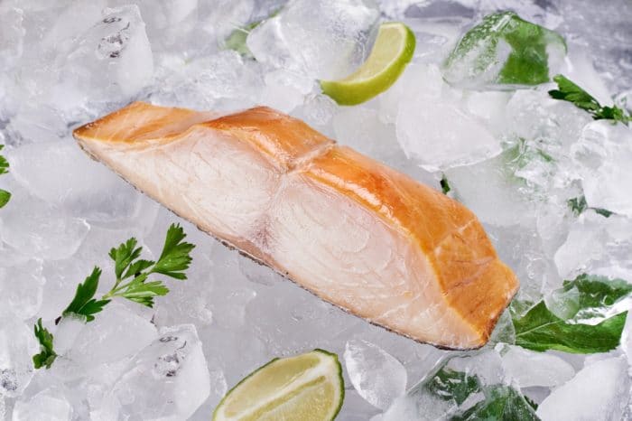 При покупке замороженного деликатеса, польза и вред которого весьма уравновешены, следует обратить пристальное внимание на внешний вид товара. Морской житель должен быть целым, без каких-либо дефектов в области туловища. Также в качестве сигнала может послужить излишек льда на поверхности рыбы.