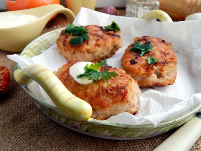 Добавление сала в рецепт, панировка в сухарях сделают блюдо более калорийным. Но сало придаст им сочность, крахмал – мягкую текстуру, а панировка сохранит влагу внутри. Количество масла, на котором жарятся котлеты, можно слегка уменьшить, ведь жир в достаточном количестве содержится в фарше.