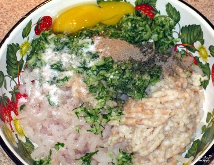 Добавить в фарш яйцо, соль, молотый перец, тщательно перемешать.
