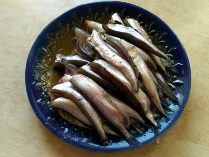 У мойвы почти нет чешуи. Мелкие чешуйки легко смываются под струей воды. А фарш можно сделать из тушек прямо с кожей.