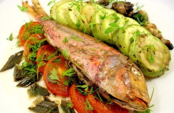 Рецепт султанки по-средиземноморски предусматривает следующие ингредиенты: