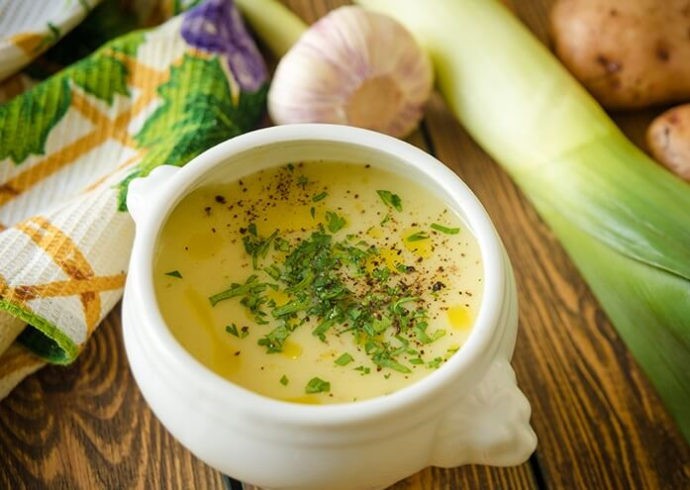 - порезанные корень и стебель сельдерея, морковку, картошку, фенхель, луковицы положите в кастрюлю. Залейте чистой водой, накройте крышкой и готовьте на среднем огне в течение 10 мин.