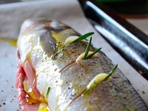 Приготовление сибаса в духовке по этому рецепту – довольно просто, предложенных ингредиентов хватит на 6 порций. Предварительно следует смазать противень растительным маслом и разогреть духовку при температуре +180C.