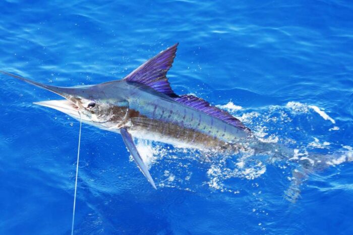Интересный факт – «Марлины благодаря наличию пигментных клеток способны изменять окрас во время охоты, что делает их менее заметными для добычи».