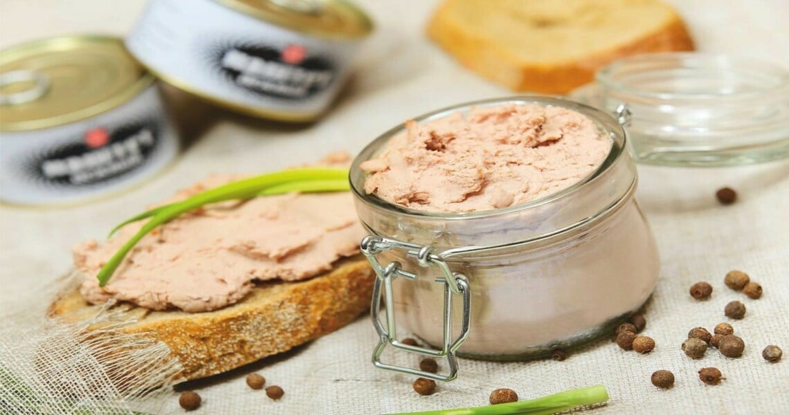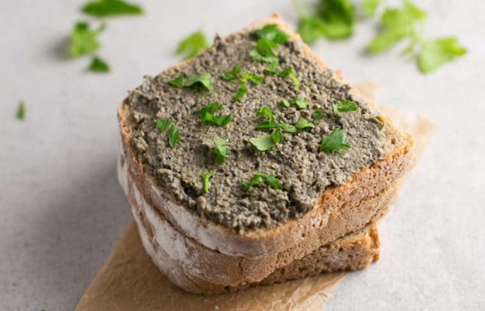 - Подавайте, намазав тонким слоем на поджаренные тосты или хлебцы и задекорировав колечками синего лука или каперсами.