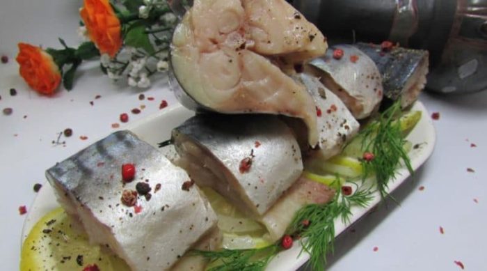 На заметку: если времени очень мало, нарежьте филе на порционные кусочки перед маринованием, так время сократится до 8 часов. Используйте рецепты скумбрии пряного посола с использованием уксуса — он ускоряет процесс соления.