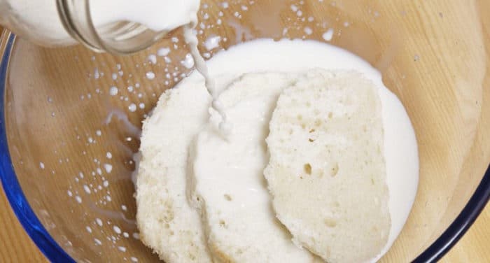 Затем нужно замочить в воде хлеб.