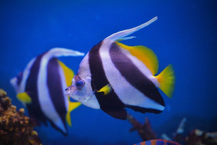 Рыба бабочка имеет уникальную особенность: ее плавательный пузырь предназначен как для поддержания баланса, так и для дыхания воздухом.