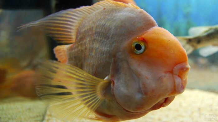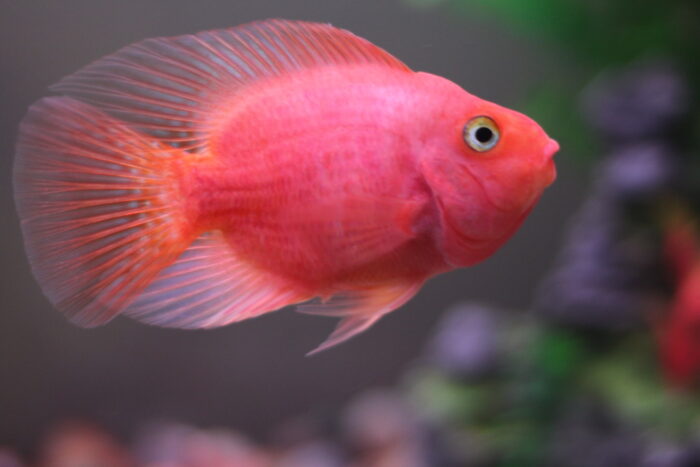 Рыба-попугай — это одна из самых привлекательных пресноводных рыб в большинстве аквариумных магазинов. Эта яркая рыбка буквально светится невероятным глубоким красным цветом, хотя встречаются особи от оранжевого до почти фиолетового. Она имеет большое тело круглой формы, что делает рыбку отличимой от других особей в аквариуме. Немного деформированный ротик придает рыбке комический характер.