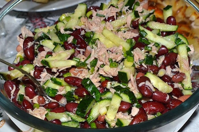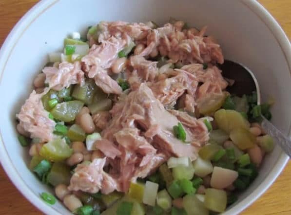 Салат с тунцом, огурцом и белой фасолью