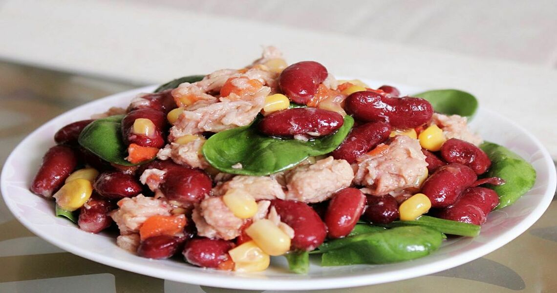 Салат с красной фасолью, лапшой и тунцом