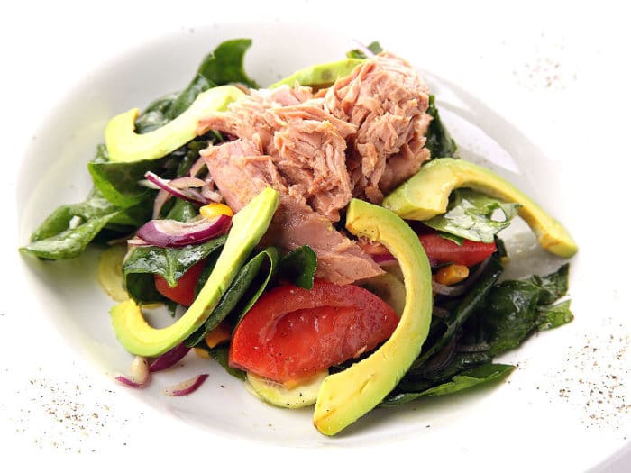 Для диетического питания в базовый салат с консервированным тунцом и кукурузой можно добавить такой компонент, как аллигаторова груша. На самом деле – это второе название авокадо, которое способно насытить организм полезными полиненасыщенными жирными кислотами. Заправку в этом случае стоит выбирать не такую калорийную и насыщенную, ведь сам плод содержит в своем составе до 25% жиров. Приготовление также не хлопотное и займет не более 20 минут.