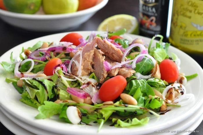 Тунец – океаническая рыба, обладающая оригинальной текстурой мышечных волокон, больше напоминающих мясо. Значительное количество белка, содержащееся в ней, позволяет быстро испытать чувство сытости и надолго зарядиться энергией. Самый легкий и доступный способ попробовать тунца – купить баночку консервов. Использовать ее можно по-разному, но если приготовить с ней салат, то результат порадует своими вкусовыми качествами и привлекательным внешним видом. Подавать такие блюда можно, как для повседневного приема пищи, так и для праздничного стола.