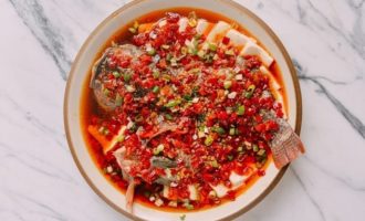 Равномерно выложите куски тилапии. Огонь должен оставаться средне-высоким или высоким. Осторожно перемешивайте, чтобы каждый кусок рыбы со всех сторон покрылся супом. Еще раз доведите до кипения.