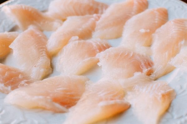 Порежьте филе на небольшие кусочки. Соедините в глубокой тарелке все составляющие маринада, положите туда куски тилапии и тщательно перемешайте. Оставьте мариноваться на 15-20 минут.