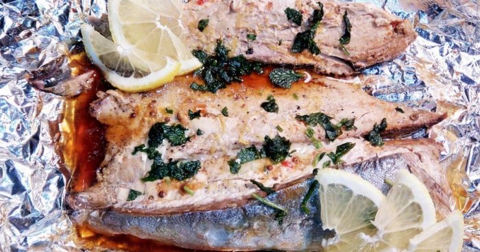 - Взять фольгу и выложить на нее рыбу вместе с маринадом. Плотно завернуть и отправить на решетку для жарки. Процесс длится приблизительно по 1-2 минуты с каждой стороны. Жарить нужно на высокой температуре.