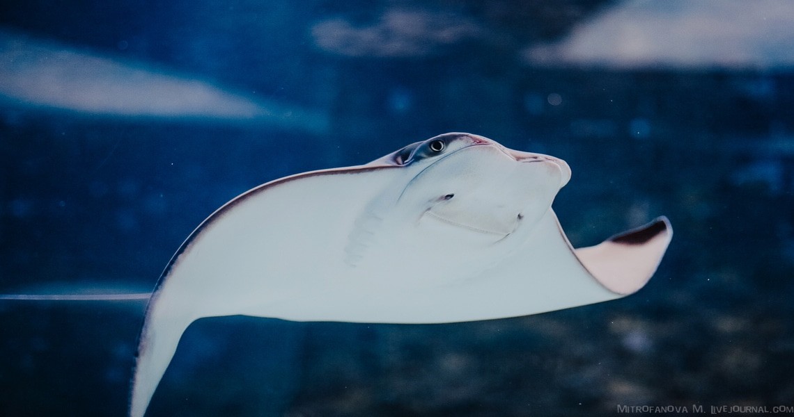 В прибрежных водах Атлантического океана встречаются необычные бычерылые скаты. Свое оригинальное название они получили из-за головы приплюснутой формы с отростками, напоминающими небольшие рожки.