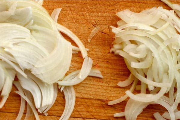 Совет – если вкус сырого лука для вас слишком резкий в салатах, просто выложите его в дуршлаг и ошпарьте кипятком.