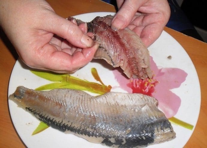 Разморозьте рыбу и разделайте ее на филе, нарежьте на порционные кусочки. Если внутри селедки попалась икра или молоки, то их тоже можно мариновать.