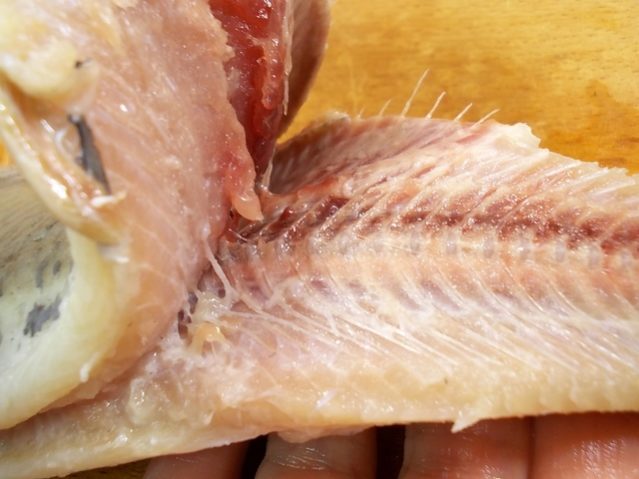 Разделать рыбу, почистить, кожу оставить, промыть и высушить бумажным полотенцем.