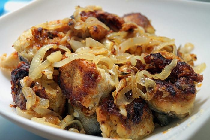 Блюдо на самом деле очень вкусное, а рецепт такой, что может спасти даже несколько раз мороженный продукт. Совершенно не важно целые куски рыбы скрываются под маринадом или нет.