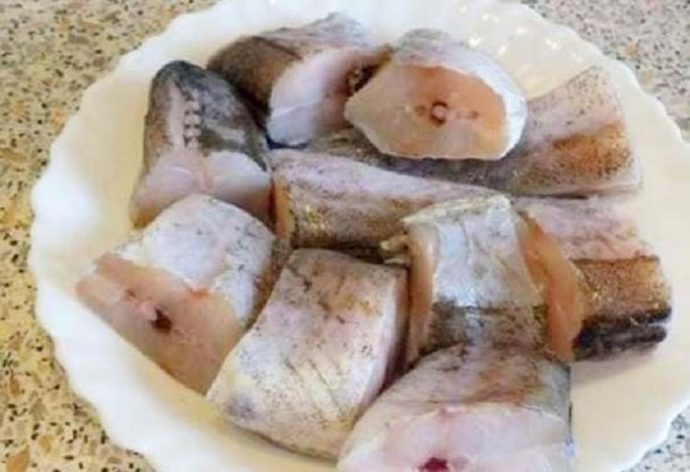 - Рыбу почистить, промыть и нарезать.