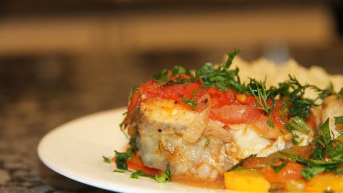 Хорошим вариантом станет подача варенного или жаренного филе с овощным рагу. Овощи, пропитанные рыбным, соусом будут иметь специфический запах и привкус.